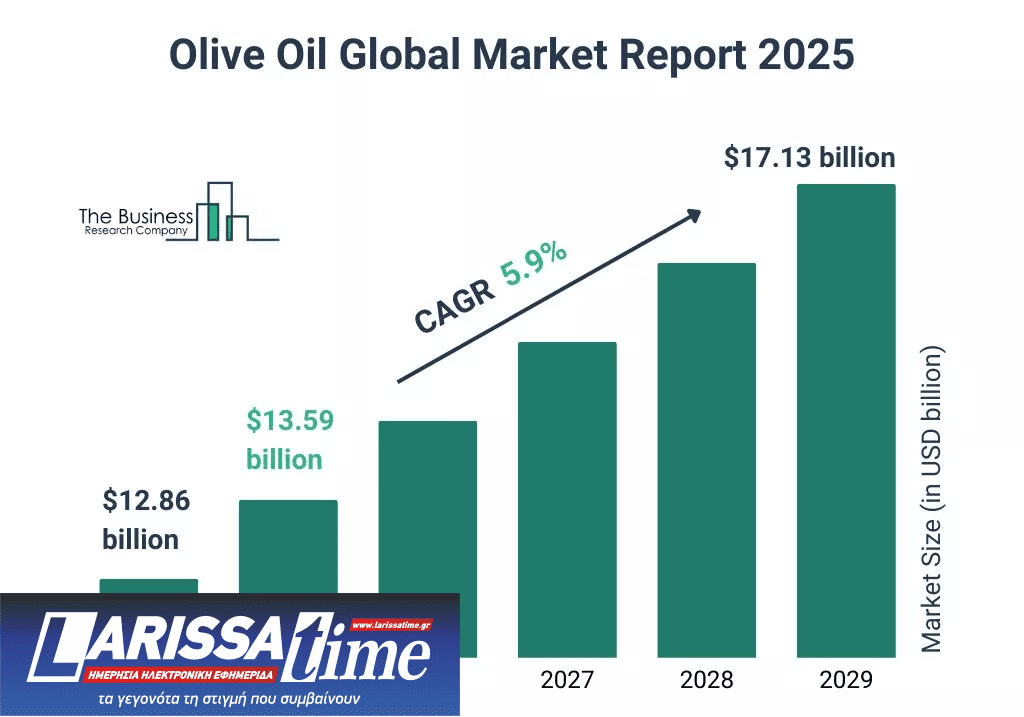 Στην πράξη, η αθροιστική αξία ανατιμάται από 12,86 δις δολάρια το 2024 σε 13,59 δις δολάρια το 2025 με σύνθετο ετήσιο ρυθμό ανάπτυξης (CAGR) 5,7%. Η ανάπτυξη μπορεί να αποδοθεί στην τάση υιοθέτησης πιο υγιεινής διατροφής, στην αυξημένη ζήτηση για γκουρμέ και εξειδικευμένα τρόφιμα, στην αναγνώριση της αξίας του ελαιολάδου για την υγεία και φυσικά στην επέκταση της διαθεσιμότητας του ελαιολάδου.