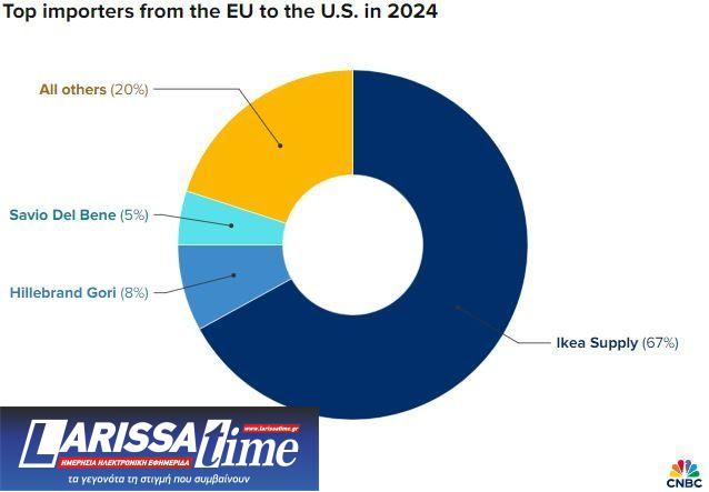 Από μια συνολική προοπτική, συμπεριλαμβανομένων των διαμεταφορέων που διακινούν μεγάλο μέρος του εμπορίου για λογαριασμό εταιρειών, η Ikea φαίνεται να είναι ο κορυφαίος παραλήπτης αποστολών της ΕΕ στις ΗΠΑ. Η εταιρεία logistics κρασιού και οινοπνευματωδών ποτών Hillebrand (μέρος της DHL), και η Amazon, είναι μεταξύ των κορυφαίων αμερικανικών εταιρειών που εισάγουν από την ΕΕ.