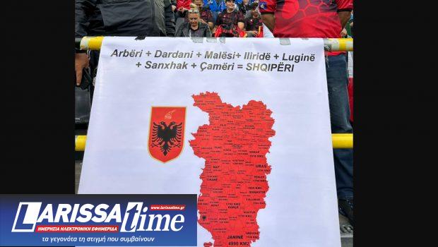 Οι Αλβανοί οπαδοί βρίσκονται στην Γερμανία για να δουν από κοντά τις προσπάθειες της Εθνικής τους ομάδας ποδοσφαίρου για μια αξιοπρεπή εμφάνιση στο Euro 2024, ενάντια στα θηρία: την Ιταλία, την Ισπανία και την Κροατία. Ένας εξ αυτών των οπαδών θεώρησε πολύ φυσιολογικό να φέρει μαζί του ένα πανό, το οποίο συμπεριελάμβανε έναν χάρτη: τον χάρτη της «Μεγάλης Αλβανίας».