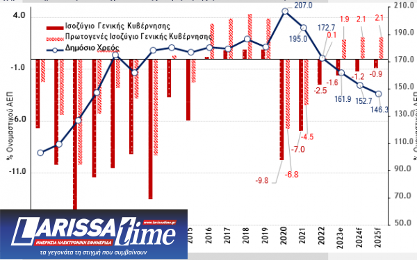 · Το δημόσιο χρέος εκτιμάται στο 152,7%ΑΕΠ το 2024 (από 161,9%ΑΕΠ το 2023) και αναμένε- ται στο 146,3%ΑΕΠ το 2025 (Σχήμα 3).
