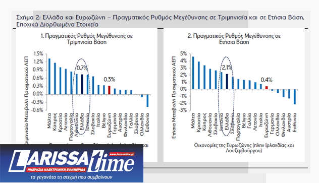 Σύμφωνα με τους οικονομολόγους της τράπεζας, η ελληνική οικονομία παρέμεινε σε φάση επέκτασης το α’ τρίμηνο 2024. Ο πραγματικός ρυθμός μεγέθυνσης ενισχύθηκε στο 0,7% QoQ / 2,1% YoY από 0,3% QoQ / 1,3% YoY το δ’ τρίμηνο 2023 και ήταν υψηλότερος τόσο σε σύγκριση με τον μέσο όρο της Ευρωζώνης όσο και σε σχέση με τη μέση εκτίμηση της αγοράς.