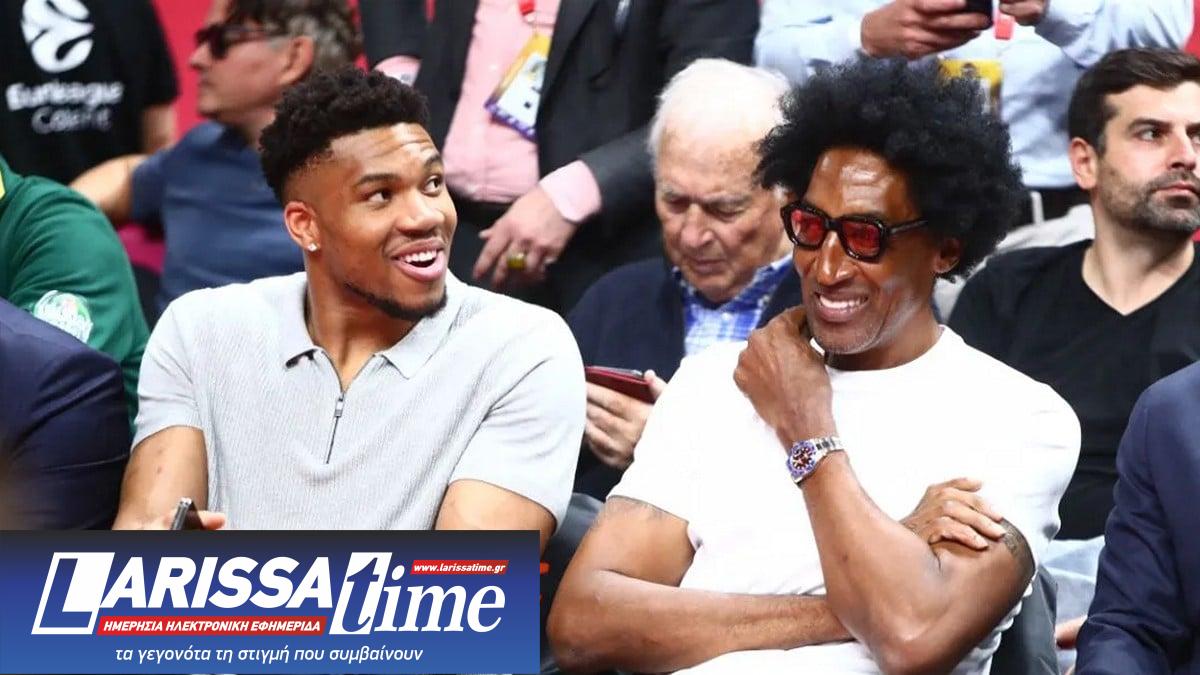 Ο σούπερ σταρ των Μπακς, Γιάννης Αντετοκούνμπο, και ο θρύλος του NBA, Σκότι Πίπεν, κάθισαν δίπλα δίπλα στα court seats της Uber Arena και είδαν από κοντά τους δύο ημιτελικούς του Παναθηναϊκού και τους Ολυμπιακού.