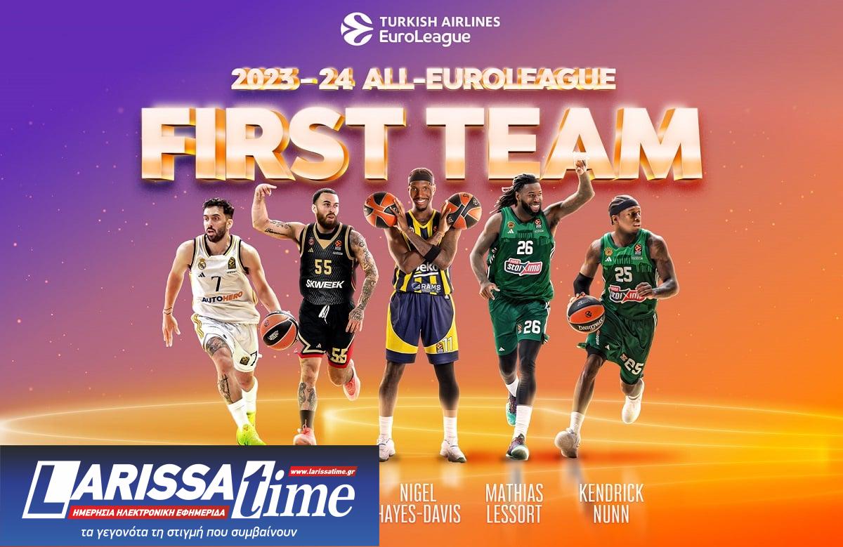 Τέλος, ο σέντερ του Παναθηναϊκού, Ματίας Λεσόρ, ψηφίστηκε για δεύτερη διαδοχική χρονιά στην κορυφαία πεντάδας της Euroleague. Πέρυσι (2022-23), το πέτυχε με την Παρτιζάν Βελιγραδίου. Με 13,7 πόντους μέσο όρο και 6,2 ριμπάουντ μέσο όρο… αποτέλεσε «πύργο» του Παναθηναϊκού, απέναντι στον οποίο αντιμετώπισαν πολλά προβλήματα οι αντίπαλοι ψηλοί. Οι 19,6 βαθμοί μέσο όρο στο σύστημα αξιολόγησης αποτελούν την υψηλότερη βαθμολογία από οποιονδήποτε άλλον παίκτη που θα είναι στο Βερολίνο και στο φάιναλ φορ. Επιπρόσθετα, τα 257 κερδισμένα φάουλ αποτελούν ρεκόρ μίας σεζόν στη Euroleague. Για… όλα αυτά, οι φίλαθλοι του Παναθηναϊκού… του συγχωρούν την αστοχία του από τη γραμμή των βολών και… ονειρεύονται πως θα τους πάει στον τελικό της 26ης Μαϊου, με νίκη επί της Φενερμπαχτσέ στον ημιτελικό.