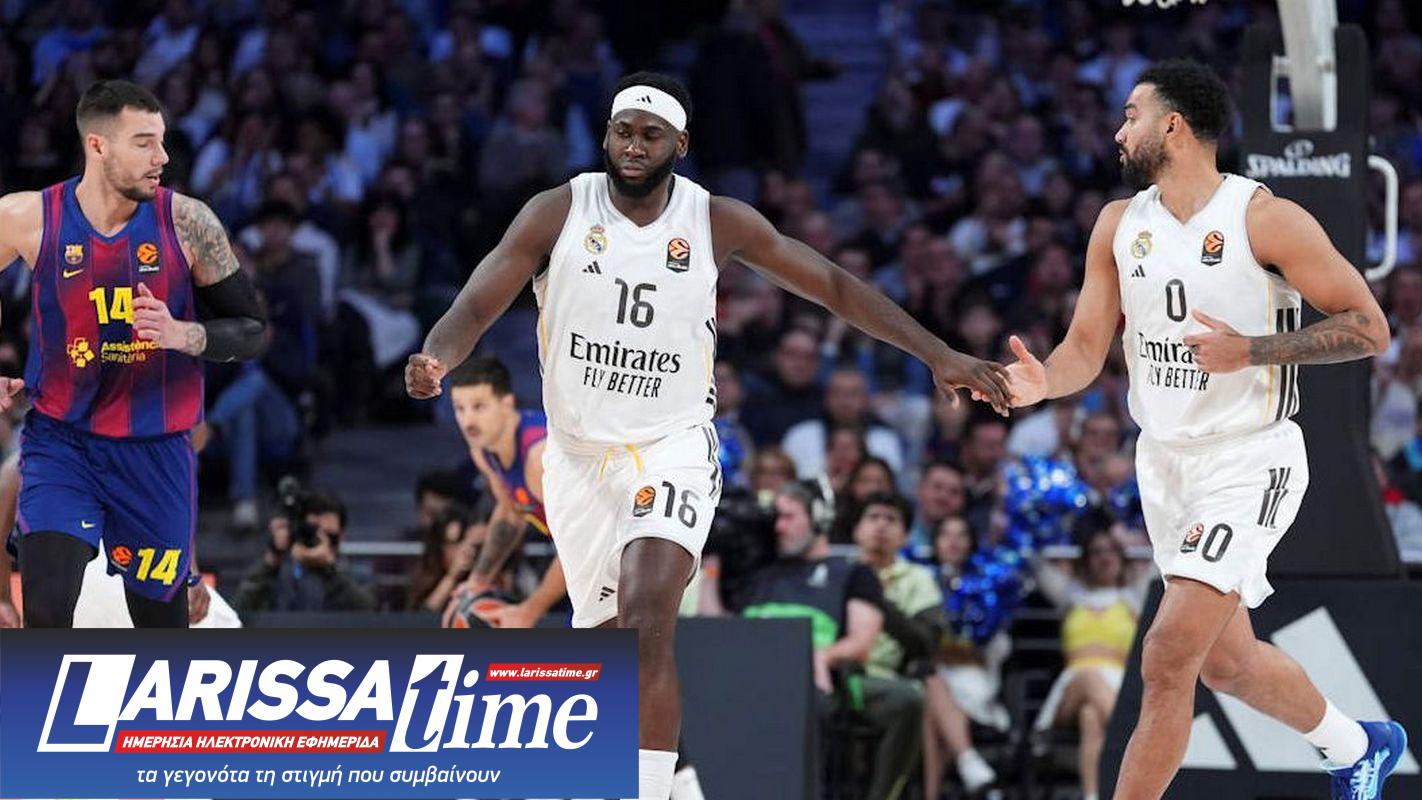 Η Ρεάλ επιβλήθηκε απόλυτα της Μπαρτσελόνα στο ευρωπαϊκό clasico, φτάνοντας στο «δύο στα δύο» απέναντι στους Καταλανούς και ισοφαρίζοντας το ρεκόρ τους (14-8). Με άμυνα-γρανίτη και απόλυτο έλεγχο των ριμπάουντ, οι Μαδριλένοι είχαν το πάνω χέρι από το ξεκίνημα, κρατώντας τη «Μπάρτσα» στους 31 πόντους στο πρώτο ημίχρονο και πηγαίνοντας στα αποδυτήρια με +12 (43-31).