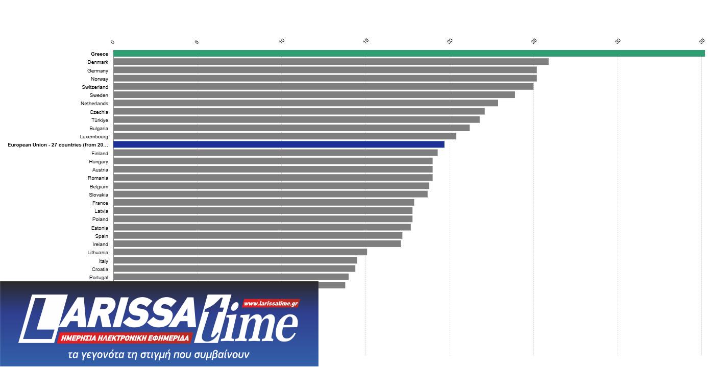 Την ίδια στιγμή ο μέσος όρος στην ΕΕ είναι 19,7%, καταδεικνύοντας το τεράστιο χάσμα της χώρας μας.