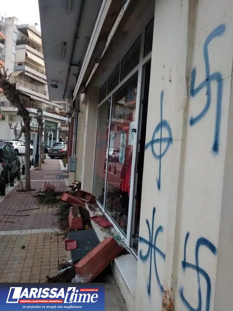 Άγνωστοι προκάλεσαν φθορές, σπάζοντας την τζαμαρία του χώρου αλλά και τις γλάστρες που βρίσκονταν εξωτερικά του σημείου, ενώ έβαψαν τους τοίχους με φασιστικά σύμβολα, σβάστικες και στοχάδια.