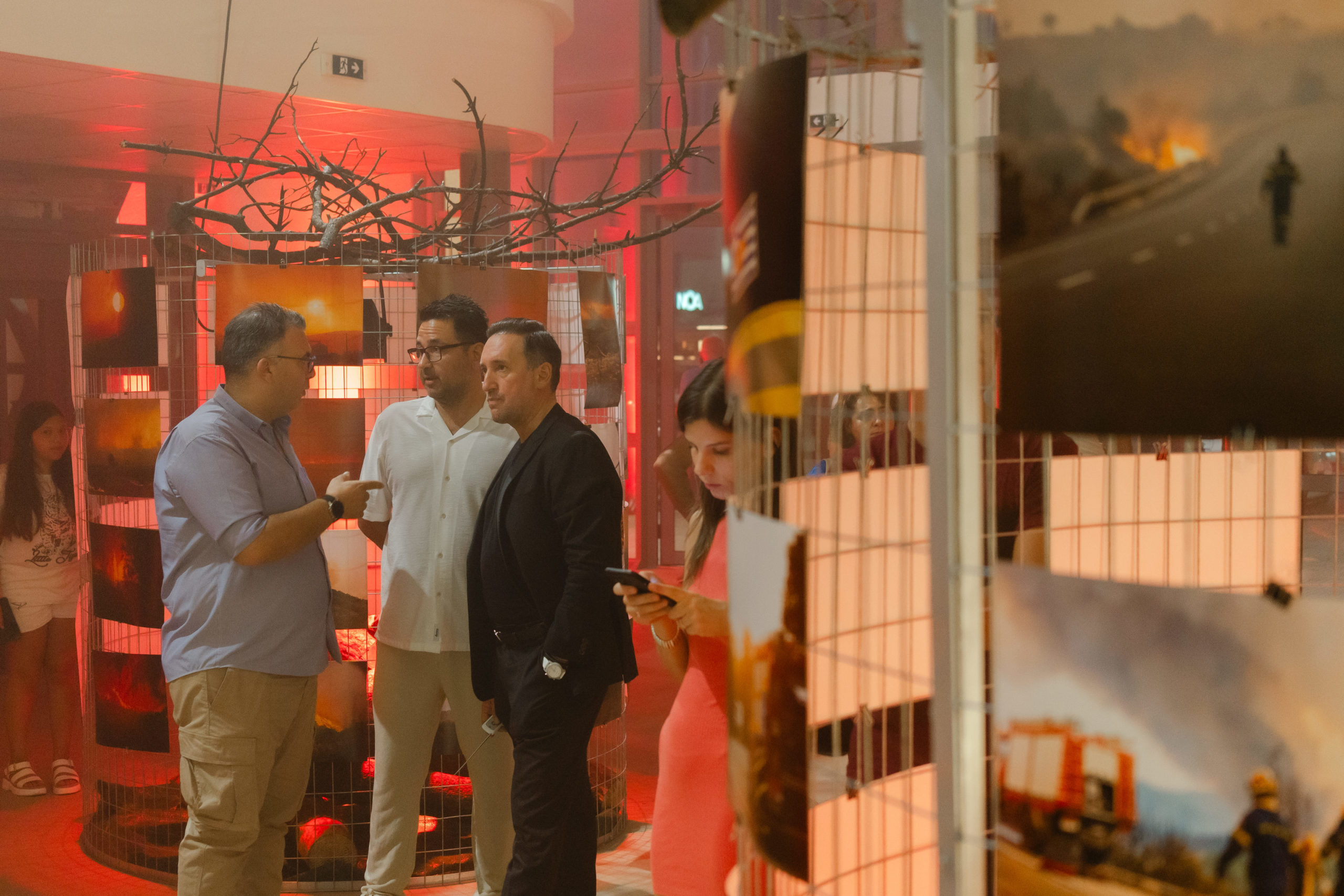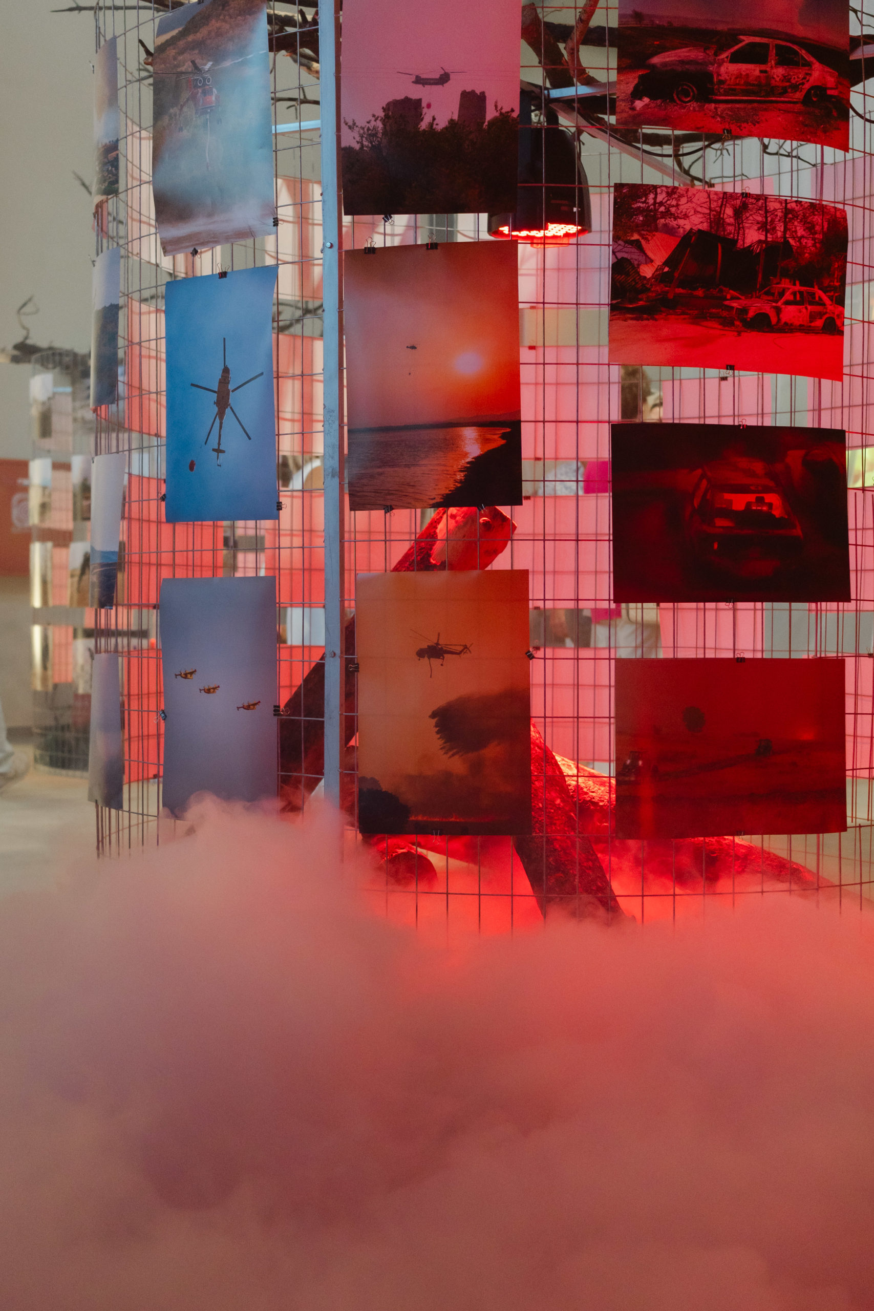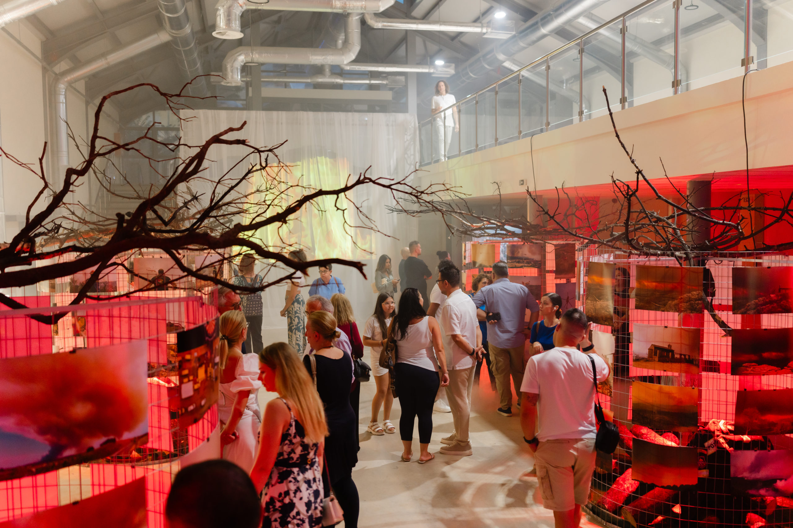 Στην διαδραστική έκθεση που φιλοξενήθηκε στην Αποθήκη Νο1 στον λιμένα της Αλεξανδρούπολης, η οποία «γέμισε» με το πορφυρό κόκκινο της φλόγας και τα ξερά κλαδιά που περιβάλλονταν από τις φωτογραφίες που ξεχώρισε ο, επί σειρά των συνεργάτης του Αθηναϊκού/Μακεδονικού Πρακτορείου Ειδήσεων, Δημήτρης Αλεξούδης, μπορούσε να παρακολουθήσει κανείς την πορεία της πύρινης τραγωδίας από την πρώτη μέχρι και την τελευταία ημέρα.