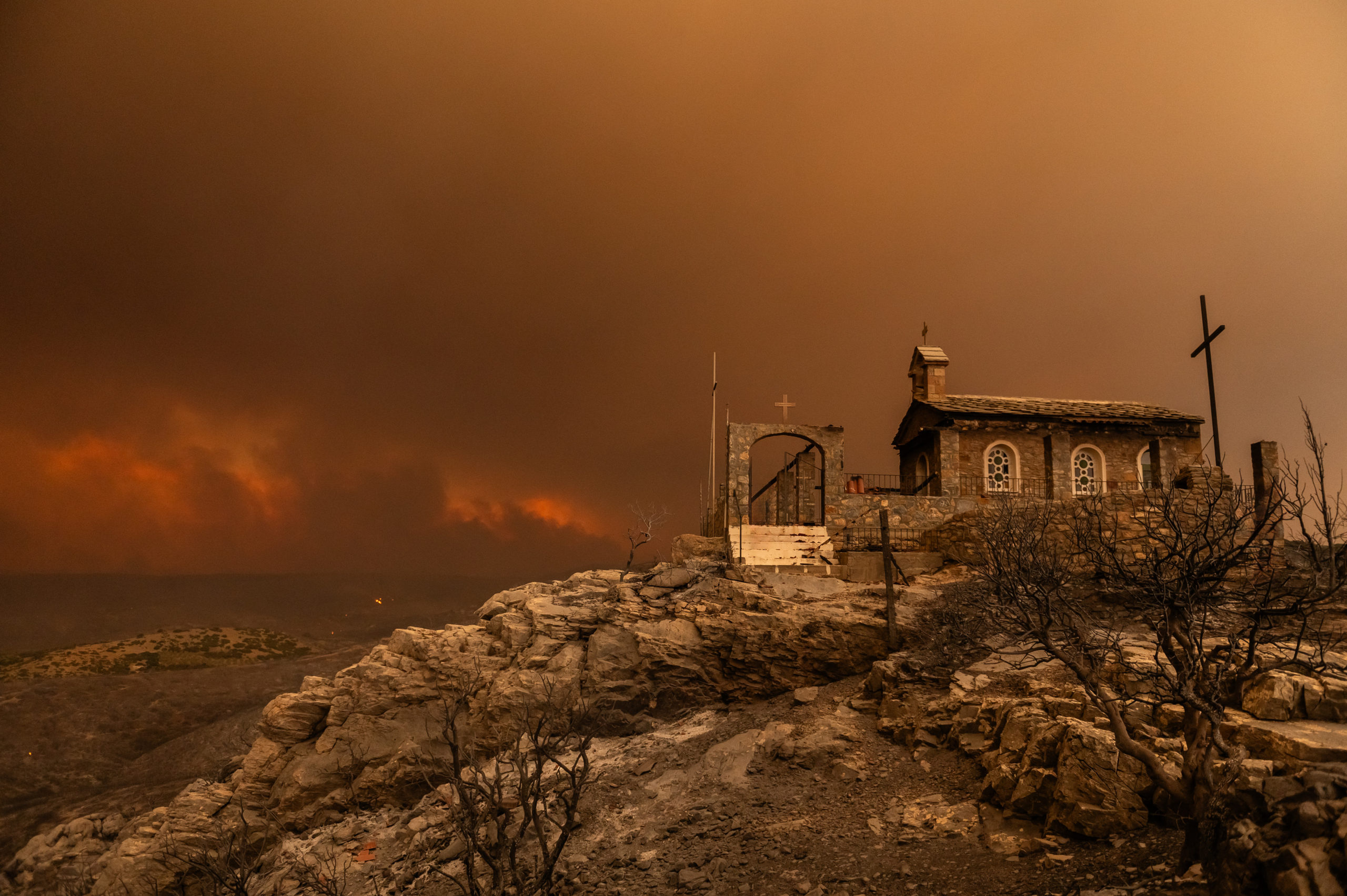 «Όταν ανεβήκαμε, επάνω στο εκκλησάκι του προφήτη Ηλία με την πανέμορφη θέα, το οποίο βρίσκεται στην Μάκρη, και ενώ έχουμε ζήσει τόσες όμορφες στιγμές, σε διάφορες εκδηλώσεις, τότε, αντικρίσαμε μία κόλαση. Έχουν καταστραφεί τα πάντα. Πλέον, αντί να βλέπεις το απέραντο πράσινο, βλέπεις ένα μαύρο τοπίο. Εκεί, πραγματικά λύγισα και είπα “δεν μπορεί να συμβαίνει αυτό, δεν το χωράει ανθρώπινος νους”», περιγράφει.