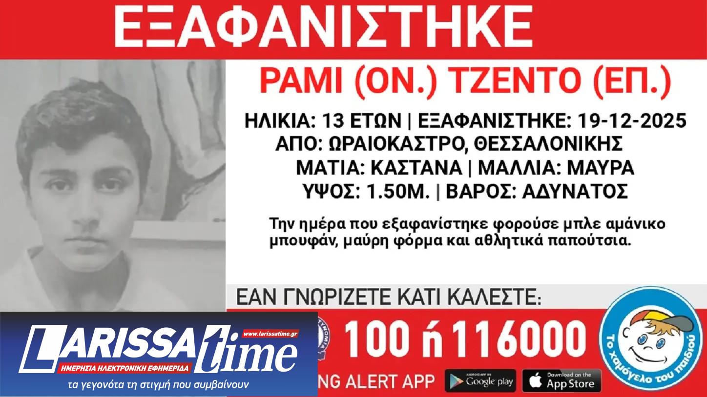 Ένας 13χρονος αγνοείται από το μεσημέρι της Παρασκευής 19 Δεκεμβρίου, όταν εξαφανίστηκε από χώρο φιλοξενίας ασυνόδευτων ανηλίκων στο Ωραιόκαστρο Θεσσαλονίκης, σύμφωνα με ανακοίνωση από Το Χαμόγελο του Παιδιού.