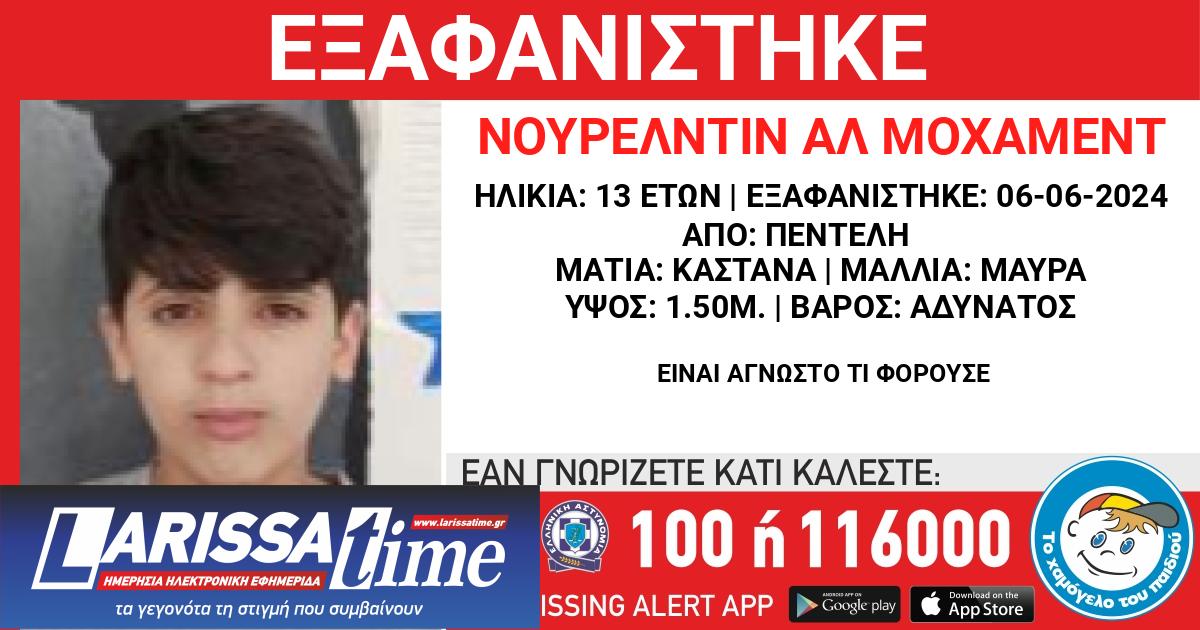 Συναγερμός σήμανε στις Αρχές για την εξαφάνιση ενός 13χρονου συριακής υπηκοότητας από χώρο φιλοξενίας ασυνόδευτων ανηλίκων στην Πεντέλη, στην Αθήνα.