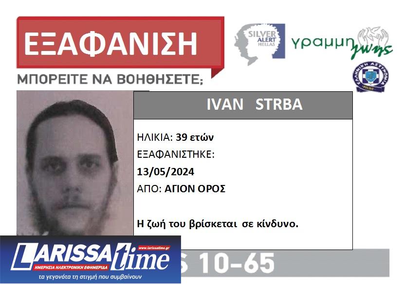 Σύμφωνα με τη Γραμμή Ζωής, ο Ivan Strba εξαφανίστηκε από το Άγιο Όρος στις 13 Μαΐου.