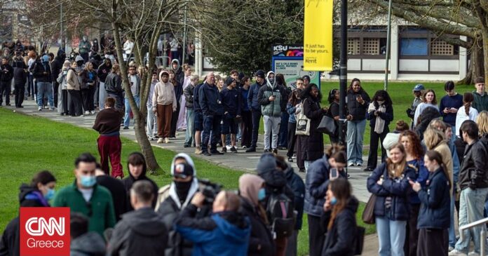 Φοιτητές που δεν έχουν ακόμα εμβολιαστεί κατά της μηνιγγίτιδας, σχημάτισαν το πρωί ουρές στο εμβολιαστικό κέντρο του Πανεπιστημίου Κεντ.