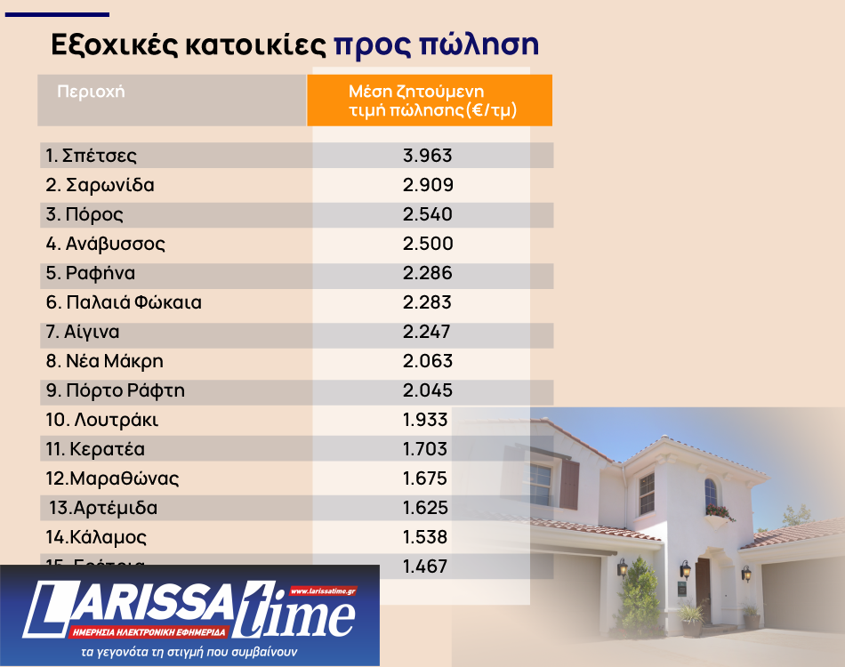 Οι δημοφιλέστερες περιοχές για αναζήτηση κατοικίας προς πώληση για τους Έλληνες υποψήφιους αγοραστές είναι τα Προάστια Θεσσαλονίκης, το κέντρο της Αθήνας, τα Νότια και Βόρεια Προάστια της Αθήνας και ο Δήμος Θεσσαλονίκης. Στα Προάστια της Θεσσαλονίκης, οι Έλληνες αγοραστές αναζητούν συχνότερα διαμερίσματα, μονοκατοικίες και μεζονέτες. Στο κέντρο της Αθήνας και στα Νότια Προάστια της Αθήνας, οι πιο δημοφιλείς κατηγορίες κατοικιών είναι και πάλι τα διαμερίσματα, οι μονοκατοικίες και τα στούντιο. Τέλος, αυτοί που αναζητούν κατοικία προς πώληση στα Βόρεια Προάστια, ενδιαφέρονται περισσότερο για μονοκατοικίες, διαμερίσματα και μεζονέτες.