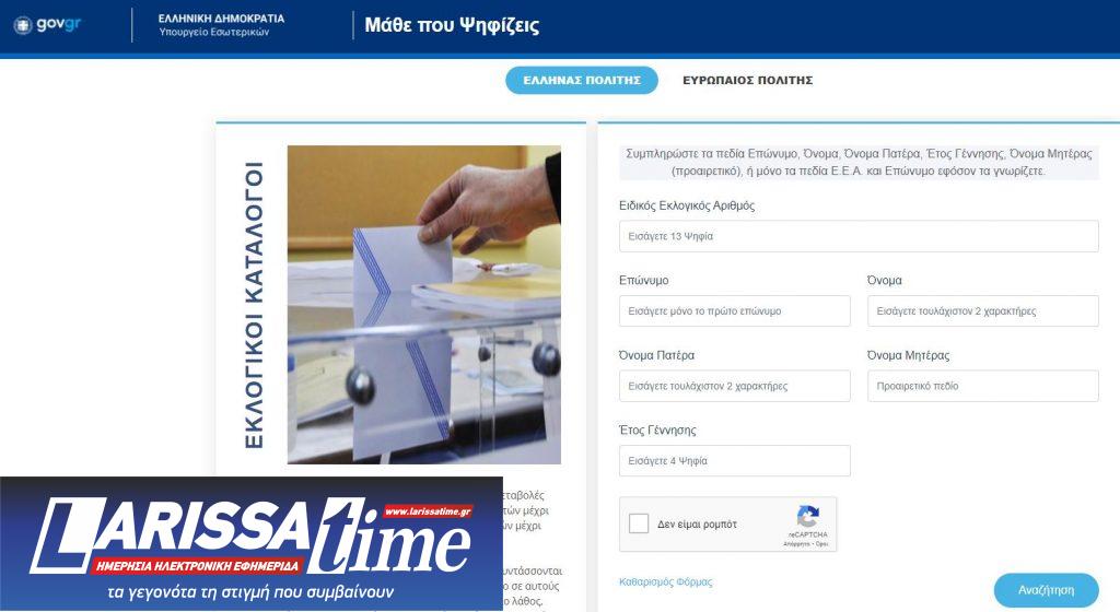 Στη διάθεση των πολιτών τα επικαιροποιημένα στοιχεία της ψηφιακής πλατφόρμας του υπουργείου Εσωτερικών με το πού ψηφίζουν οι πολίτες, ενόψει 9ης Ιουνίου και ευρωεκλογών. Σύμφωνα με την τελευταία ενημέρωση από σήμερα, Παρασκευή (24/05), υπάρχει η δυνατότητα στους ψηφοφόρους να δουν το εκλογικό τμήμα που ψηφίζουν με βάση την διεύθυνση κατοικίας.