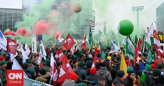 Κρατώντας σημαίες και αναμμένα καπνογόνα, χιλιάδες αγρότες διαδήλωσαν σήμερα έξω από την έδρα του Ευρωπαϊκού Κοινοβουλίου στο Στρασβούργο, διαμαρτυρόμενοι για τη συμφωνία της ΕΕ με τη Mercosur, παραμονή της ψηφοφορίας με αντικείμενο την προσφυγή στη δικαιοσύνη.