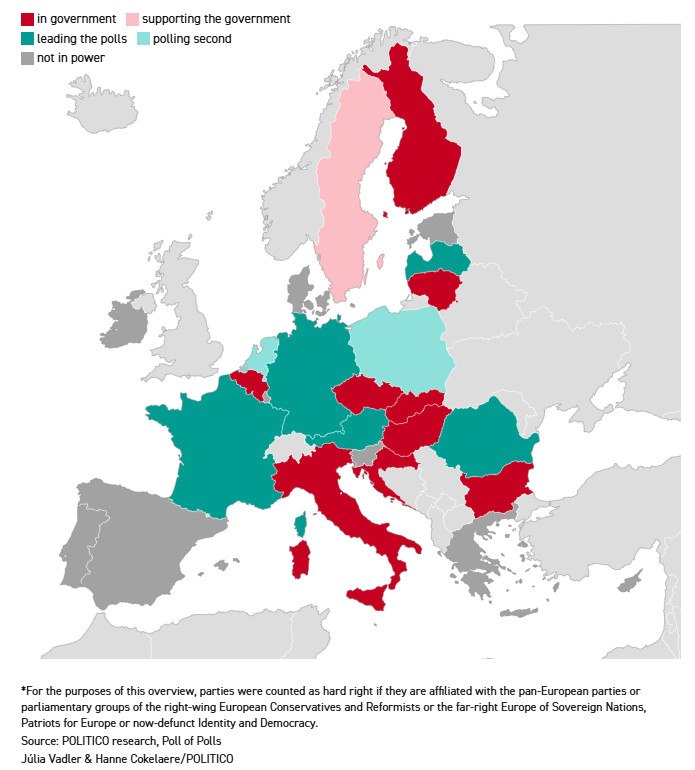 Την ίδια στιγμή, σε μία κατάσταση που μερικοί παραλληλίζουν με τη Γερμανία του ’30, ιοι κεντροδεξιοί της ΕΕ αναγκάζονται να στηρίζονται στις ψήφους της άκρας δεξιάς για να περάσουν κρίσιμες αποφάσεις.