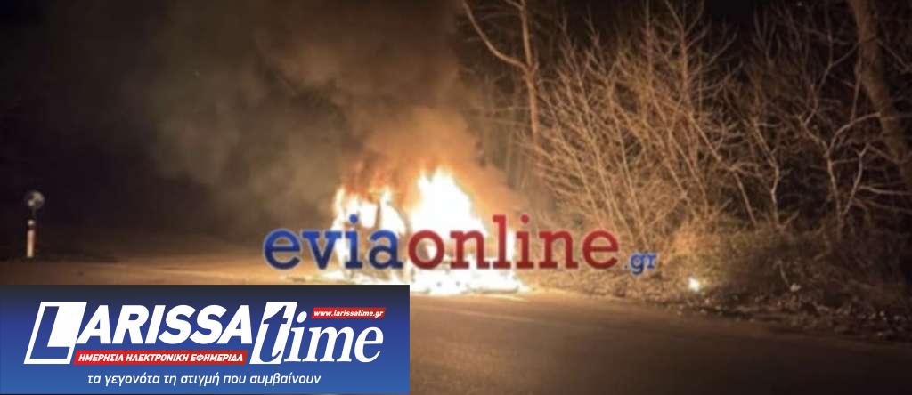Στις φλόγες τυλίχθηκε εν κινήσει όχημα κοντά στο χωριό Καθενοί, στην Εύβοια, το βράδυ της Δευτέρας (24/02).