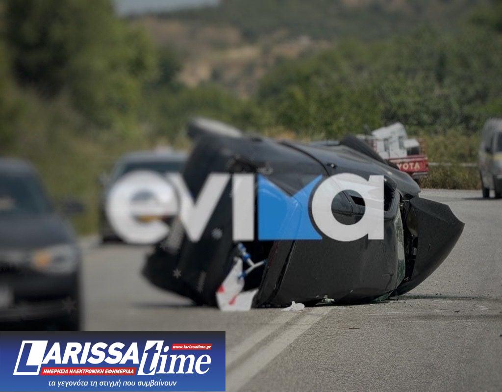 Όπως θα δείτε στα βίντεο του evima.gr το μαύρο αυτοκίνητο μετά την μετωπική σύγκρουση με το δεύτερο δεύτερο, αναποδογύρισε στη μέση του δρόμου.