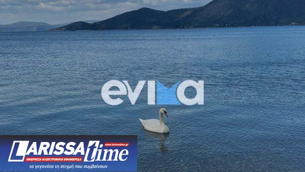 Μια μαγευτική εικόνα όσο και απρόσμενη αντίκρισαν το πρωί οι κάτοικοι και επισκέπτες της Εύβοιας, καθώς ένας λευκός κύκνος έκανε την εμφάνισή του σε γνωστή παραλία της περιοχής.