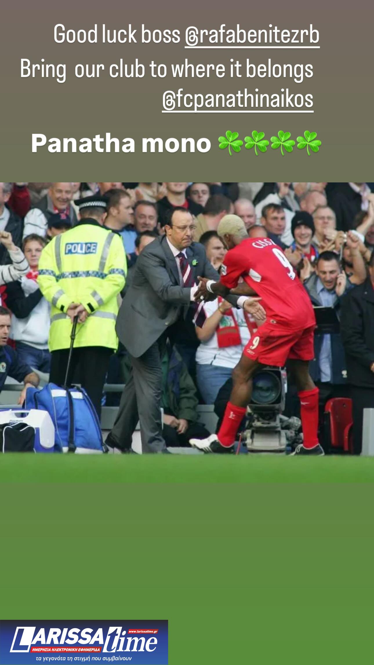 Μόλις ενημερώθηκε για τη συμφωνία, ο Σισέ δημοσίευσε ένα story στο Instagram, ανεβάζοντας κοινή φωτογραφία με τον Μπενίτεθ από την εποχή της Λίβερπουλ. Στη λεζάντα, έγραψε χαρακτηριστικά: «Καλή τύχη κόουτς Ράφα Μπενίτεθ. Φέρε την ομάδα μας εκεί που αξίζει. Πανάθα μόνο!».