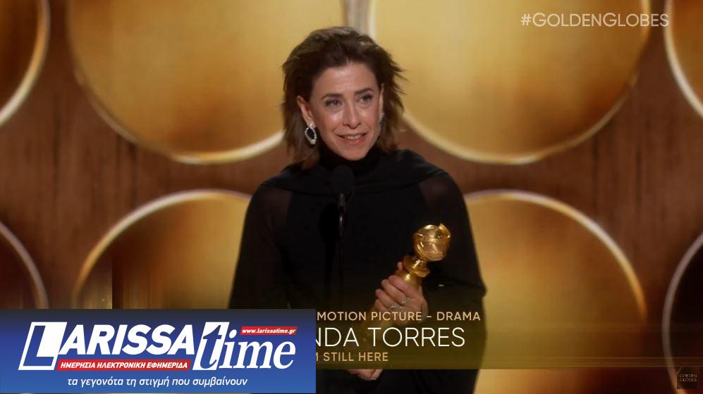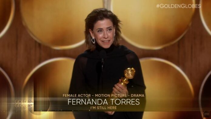 Η Βραζιλιάνα ηθοποιός Φερνάντα Τόρες βραβεύθηκε τα ξημερώματα της Δευτέρας (6/1) με Χρυσή Σφαίρα α΄ γυναικείου ρόλου σε δραματική ταινία για την ερμηνεία της στο «I’m Still Here» στα βραβεία Golden Globes που πραγματοποιήθηκαν το βράδυ.