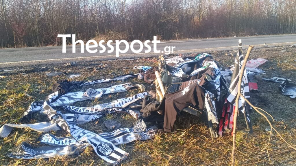 Αρκετά συντρίμμια από την σύγκρουση υπάρχουν ακόμη στο σημείο στα πλάγια του δρόμου και οπαδοί προχώρησαν σε μια συγκινητική κίνηση, να τα καλύψουν με σημαίες, μπλούζες και κασκόλ της αγαπημένης τους ομάδας, τιμώντας τη μνήμη των αδικοχαμένων νεαρών φιλάθλων του «Δικεφάλου του Βορρά».