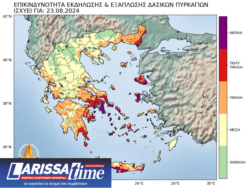⚠️ Χάρτης Πρόβλεψης Κινδύνου 🔥 για αύριο Παρασκευή 23/08: