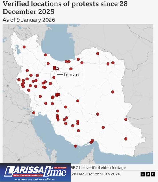 Χάρτης του BBC με τις διαδηλώσεις σε 16 πόλεις στο Ιράν
