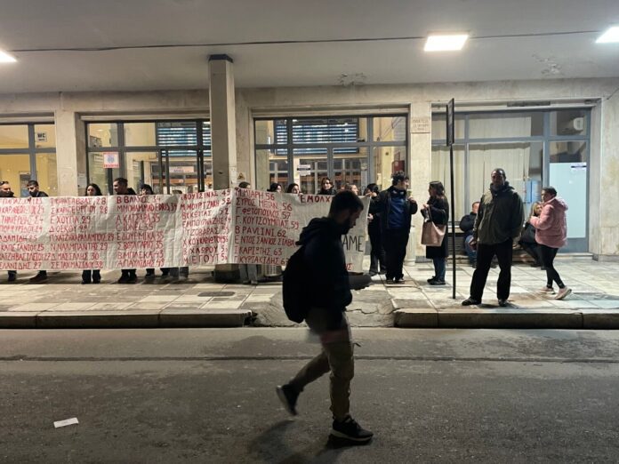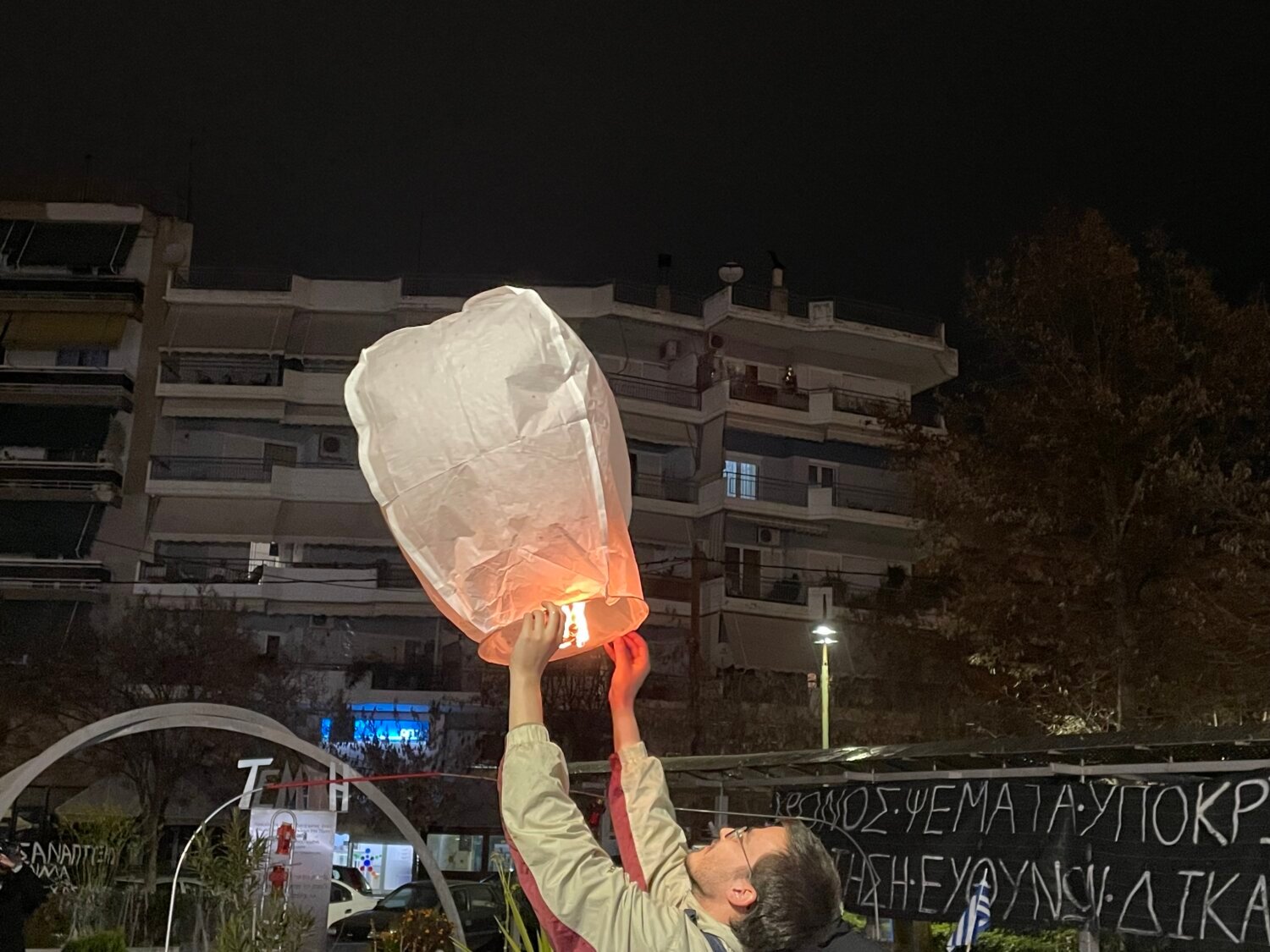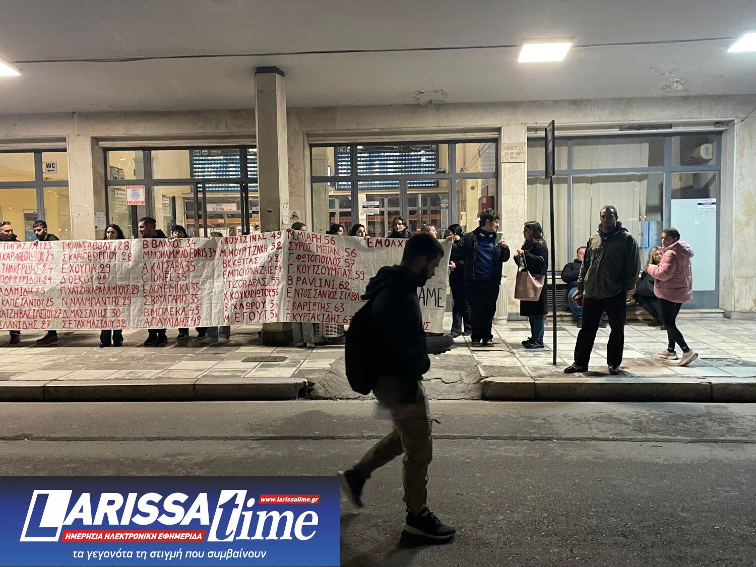 Νωρίτερα, σύμφωνα με το Larissanet.gr, είχαν διαμαρτυρηθεί έξω από το κτίριο, ενώ άναψαν και φαναράκια στη μνήμη των θυμάτων.