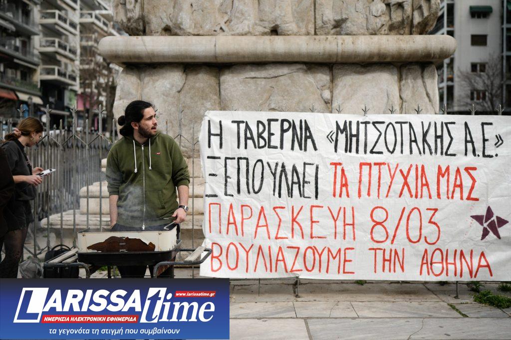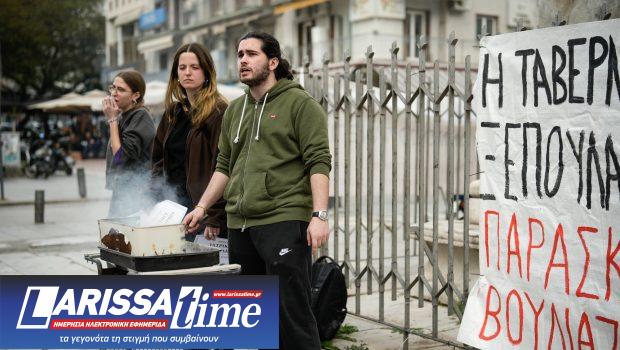 Ψησταριά στην οποία τσίκνισαν… τα πτυχία τους έστησαν φοιτητές της Θεσσαλονίκης κατά τη διάρκεια του σημερινού συλλαλητηρίου ενάντια στα ιδιωτικά πανεπιστήμια.