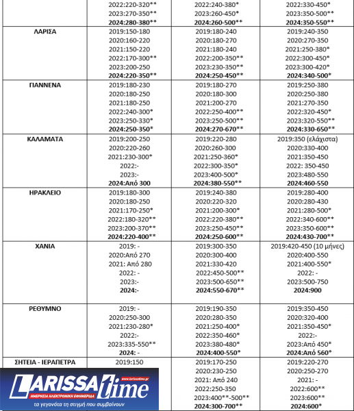 Το κόστος μίσθωσης κατοικίας 30τμ-45τμ αγγίζει ακόμη και τα 550€/μήνα, ενώ για κατοικία 50τμ-60τμ ακόμη και τα 550€, ενώ για κατοικία έως 25τμ από 300€/μήνα.
