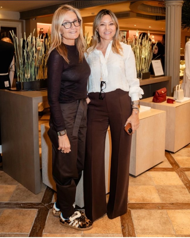 Η σύζυγος του πρωθυπουργού, η οποία είναι συνιδρύτρια του brand, πήγε στην εκδήλωση φορώντας ένα total brown look με casual παντελόνι με υφασμάτινη ζώνη στη μέση και μακρυμάνικο τοπ.
