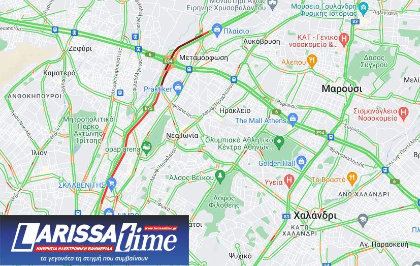 Αυτή την ώρα κλειστές είναι οι δύο λωρίδες στην άνοδο στην Μεταμόρφωση στο ύψος της Αττικής Οδού.