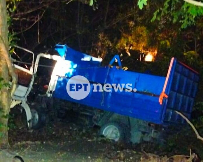 Η σύγκρουση ήταν τόσο δυνατή που το φορτηγό εκτράπηκε από την πορεία του και κατέληξε εκτός δρόμου, μέσα σε παρακείμενο χαντάκι. Από τη σφοδρότητα του χτυπήματος, ο οδηγός τραυματίστηκε και εγκλωβίστηκε στην καμπίνα του οχήματος.