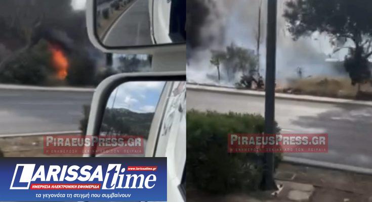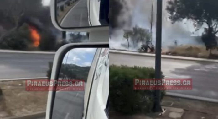Φωτιά ξέσπασε πριν από λίγο κοντά σε βενζινάδικο στη Λεωφόρο Σχιστού στον Σκαραμαγκά