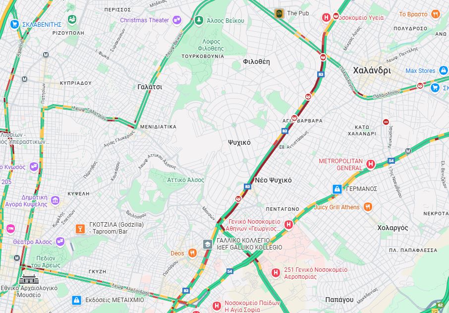Λόγω της πυρκαγιάς έχει δημιουγηθεί μεγάλο μποτιλιάρισμα και στα δύο ρεύματα της Κηφισίας.