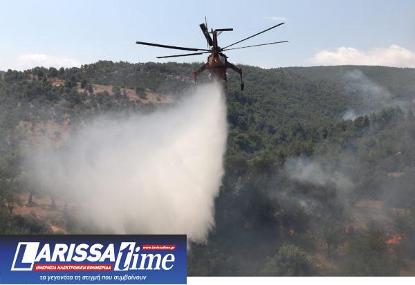 Για το περιστατικό έχουν κινητοποιηθεί 35 πυροσβέστες με 10 οχήματα, 1 ομάδα πεζοπόρου της 2ης ΕΜΟΔΕ, ενώ από αέρος συνδράμουν 2 ελικόπτερα.
