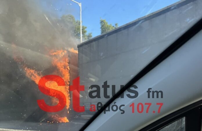 Σύμφωνα με τις πρώτες πληροφορίες, η φωτιά ξέσπασε από άγνωστη μέχρι στιγμής αιτία, στην νταλίκα που βρισκόταν εν κινήσει.
