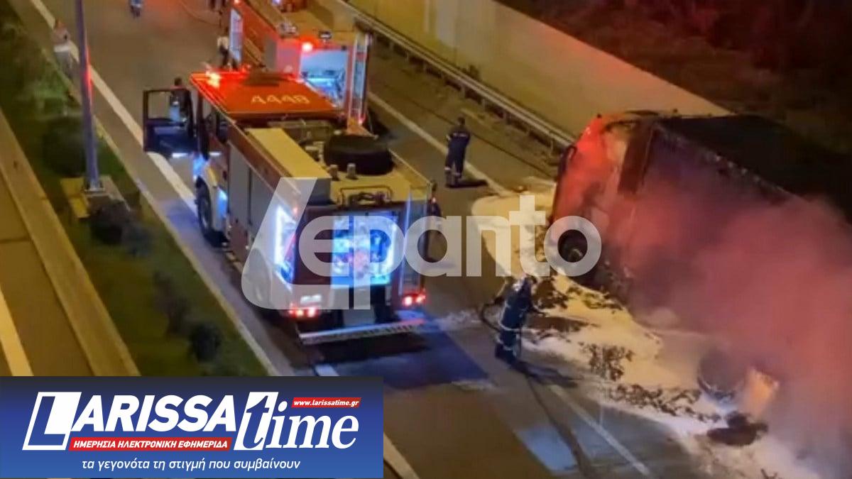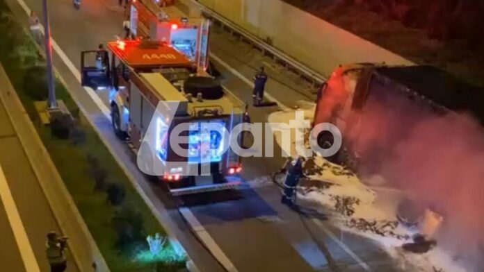 Συναγερμός σήμανε το βράδυ της Παρασκευής στην Πυροσβεστική Υπηρεσία Ναυπάκτου, όταν ενημερώθηκε για φωτιά σε νταλίκα που κατευθυνόταν από το Αντίρριο προς τα Ιωάννινα μέσω της Ιόνιας Οδού. Το περιστατικό σημειώθηκε λίγο μετά το τούνελ της Μακύνειας, με τον οδηγό να εντοπίζει τη φωτιά και να λαμβάνει άμεσα μέτρα.