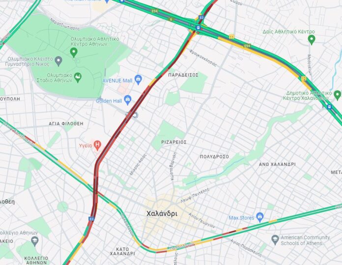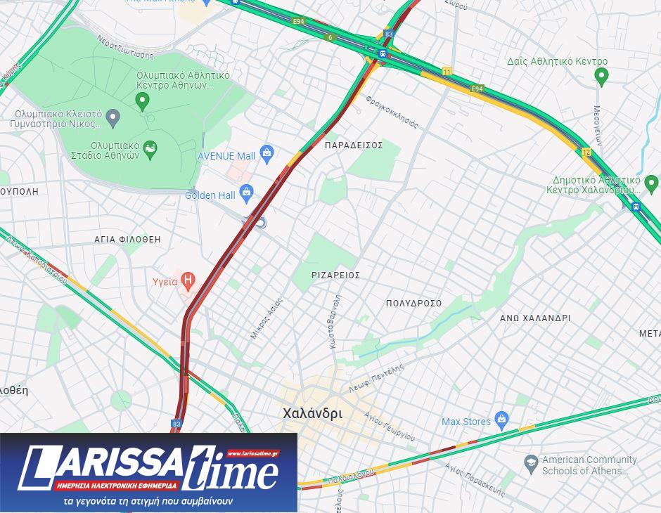 Η κυκλοφορία των οχημάτων στο σημείο διεξάγεται με δυσκολία με συνέπεια να σημειώνονται καθυστερήσεις όπως φαίνεται και στον χάρτη.