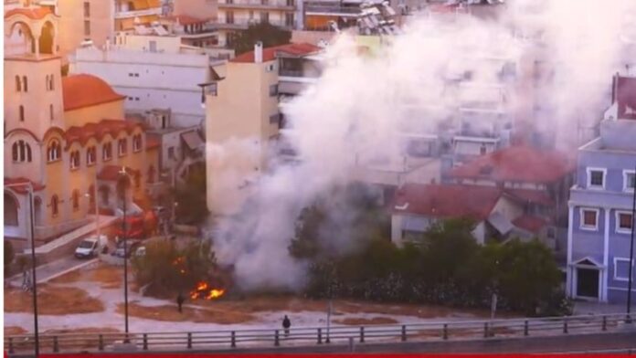 Φωτιά εκδηλώθηκε σε υπαίθριο χώρο πλησίον του τηλεοπτικού σταθμού ΣΚΑΪ στο Φάληρο, περίπου στις 6 το πρωί της Πέμπτης.