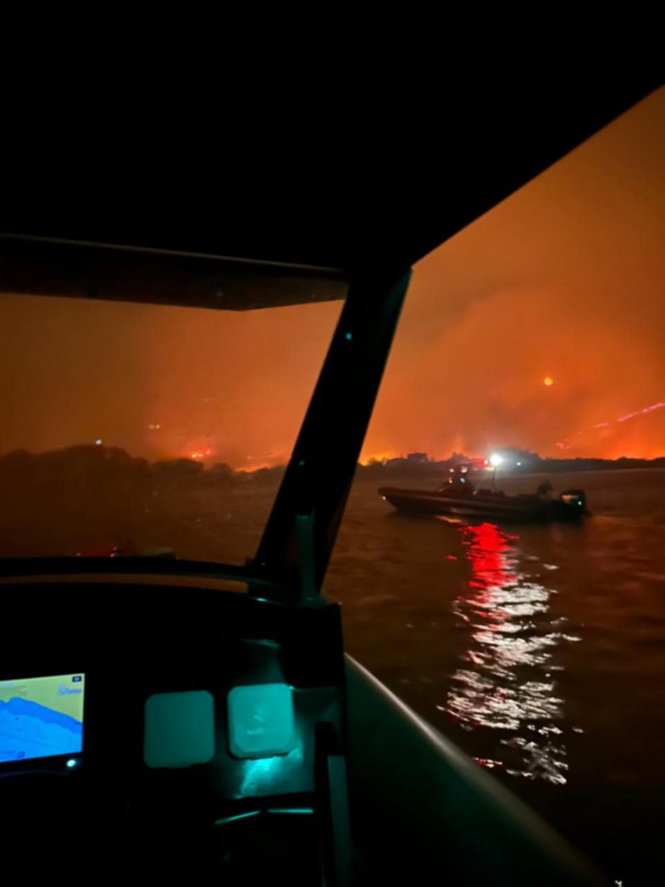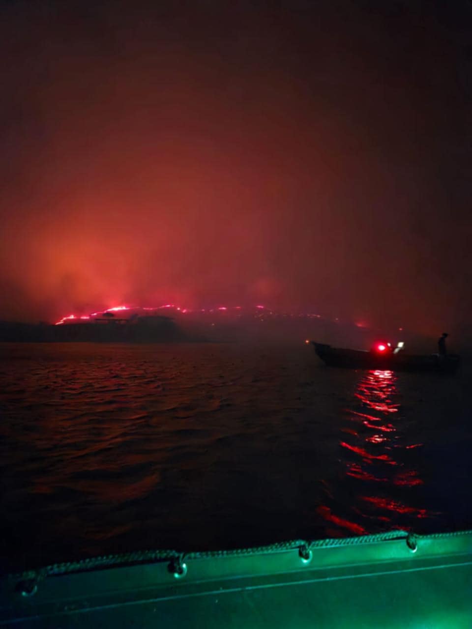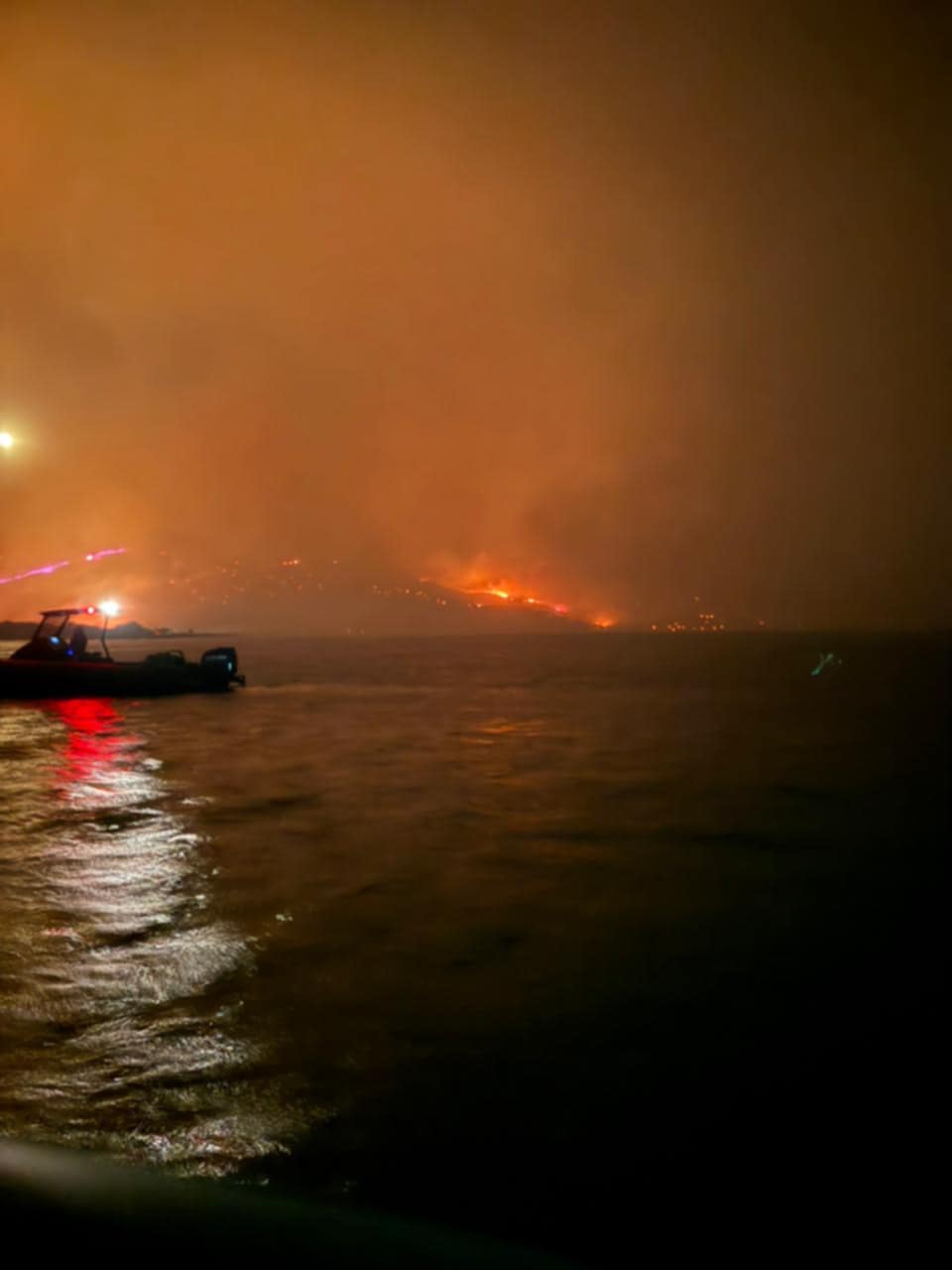 «Βγήκαμε στον Μάναγρο, ήρθαν άλλα δύο σκάφη του Λιμενικού, παίρναμε κόσμο και τους δίναμε σε αυτό. Βγάζαμε αρκετά άτομα, κάθε φορά. Τότε, αποσυμφορήθηκε η κατάσταση από τις παραλίες, και λίγο εξασθένησαν τα πύρινα μέτωπα. Στη θάλασσα υπήρχε στάχτη και έπεφταν καύτρες, οπότε έπρεπε να μετακινηθούμε πιο βαθιά για να προστατεύσουμε τα φουσκωτά, μέχρι που η φωτιά έφτασε μέσα στο λιμάνι Λιμνιών. Μέχρι τις 00:00 ήμασταν σε επιφυλακή στην παραλία, προσπαθώντας να μάθουμε αν υπάρχει κάποιος που χρειάζεται να φύγει. Έπειτα, ήμασταν στο λιμάνι, μέχρι τις 05:00 σήμερα το πρωί».