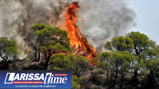 Η φωτιά καίει σε δασική έκταση χωρίς να απειλείται κατοικημένη περιοχή.