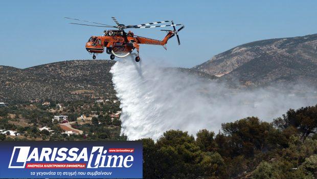Για την κατάσβεσή της ενεργούν 20 πυροσβέστες με ένα πεζοπόρο τμήμα, έξι οχήματα, δύο ελικόπτερα και δύο αεροσκάφη.