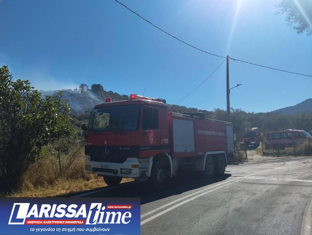 Σύμφωνα με την Πυροσβεστική, η φωτιά καίει σε μία χαράδρα, μακριά από τον οικισμό, και προς το παρόν δεν απειλείται κατοικημένη περιοχή.