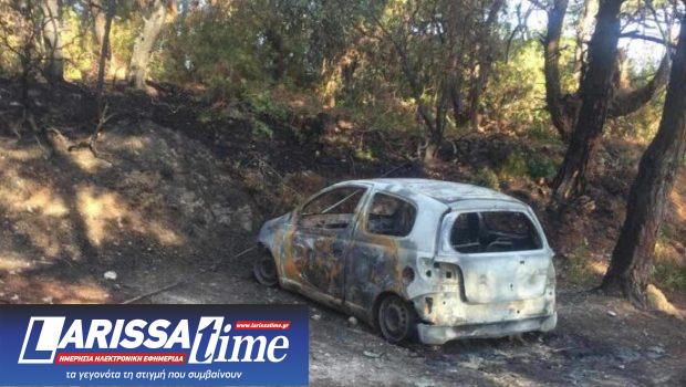 Από τη φωτιά κάηκε ολοσχερώς το αυτοκίνητο, καθώς και δασική έκταση 250 τετραγωνικών μέτρων.