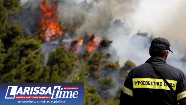Σύμφωνα με πληροφορίες -προς το παρόν- οι φλόγες δεν απειλούν κατοικημένη περιοχή.