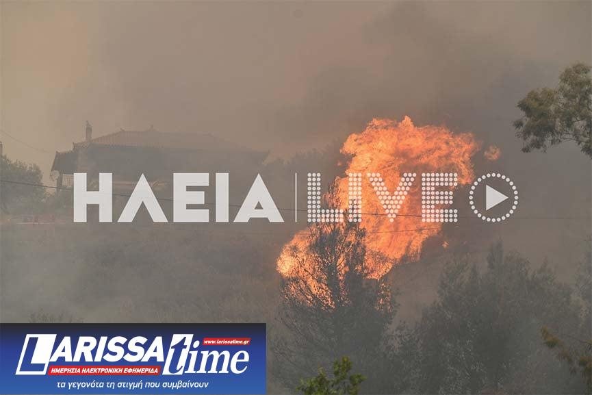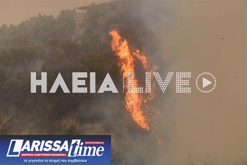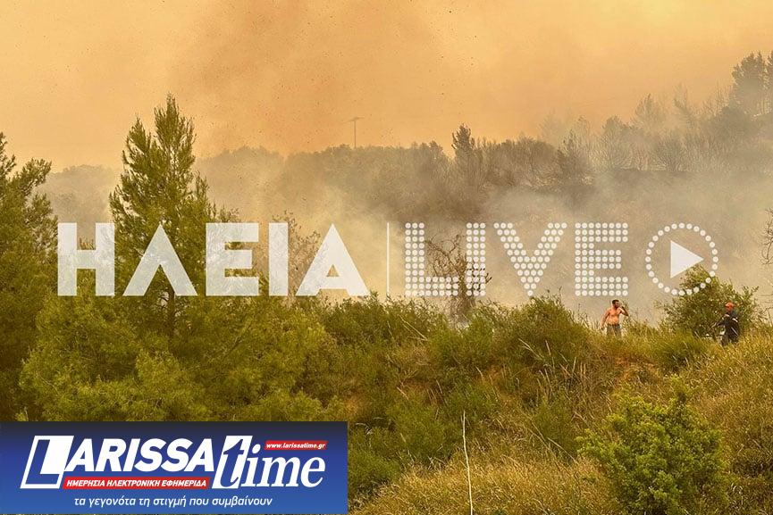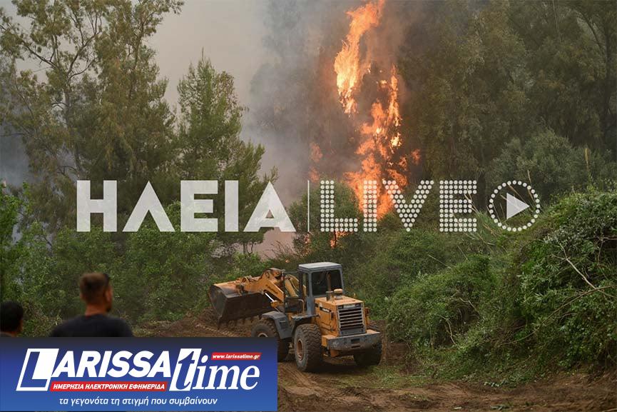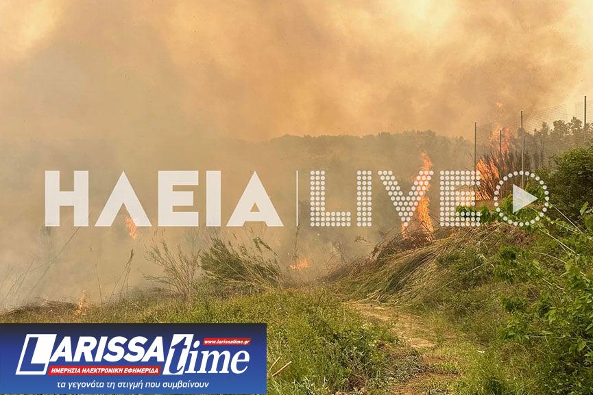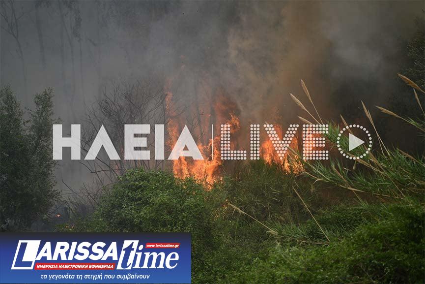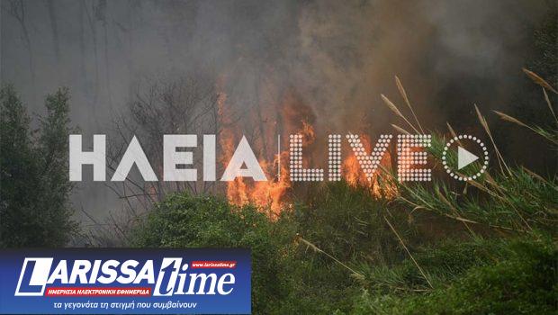 Φωτιά στη Ζαχάρω κοντά στον οικισμό Σχίνοι (Πηγή: Ilialive.gr)