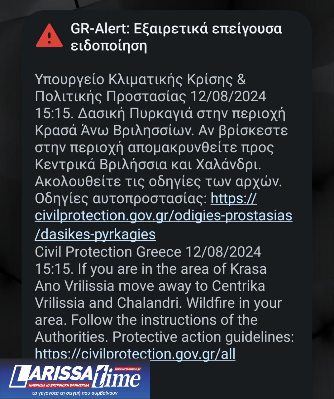 Εντωμεταξύ πριν από λίγο δόθηκε εντολή εκκένωσης στους κατοίκους των Άνω Βριλησσίων μέσω 112 που τους καλούσε να μεταφερθούν στα κεντρικά Βριλήσσια και στο Χαλάνδρι.