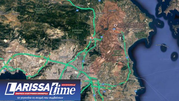 Στον χάρτη του ευρωπαϊκού δικτύου Copernicus φαίνονται τα τελευταία δεδομένα οι ενεργές εστίες της καταστροφικής πυρκαγιάς.